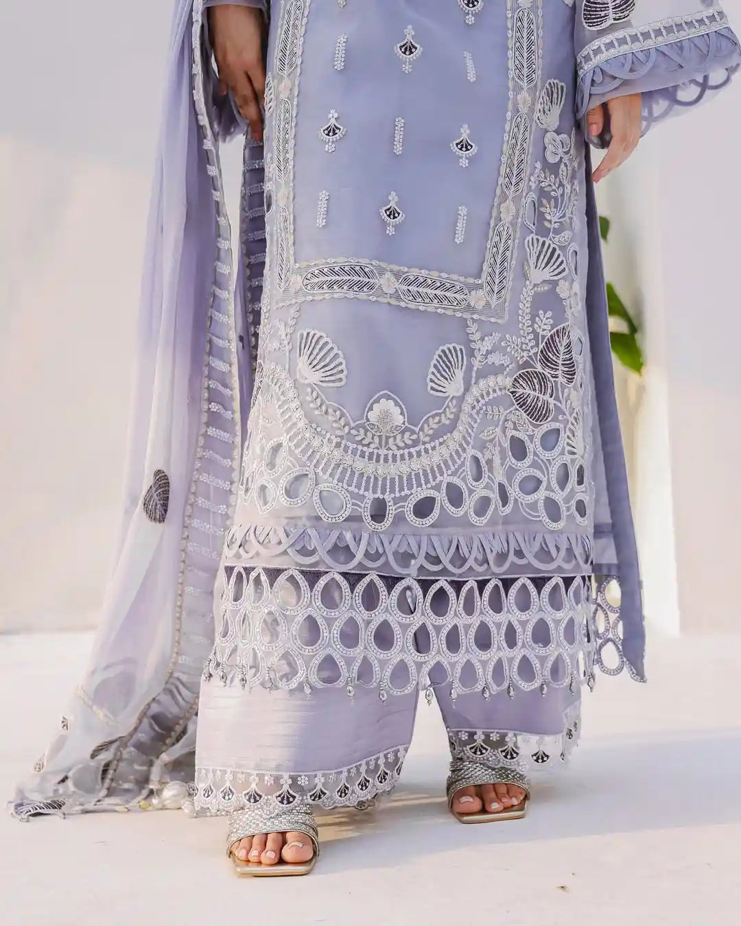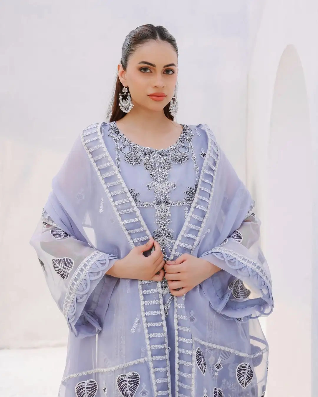 Embroidered organza front with handwork 25 inches